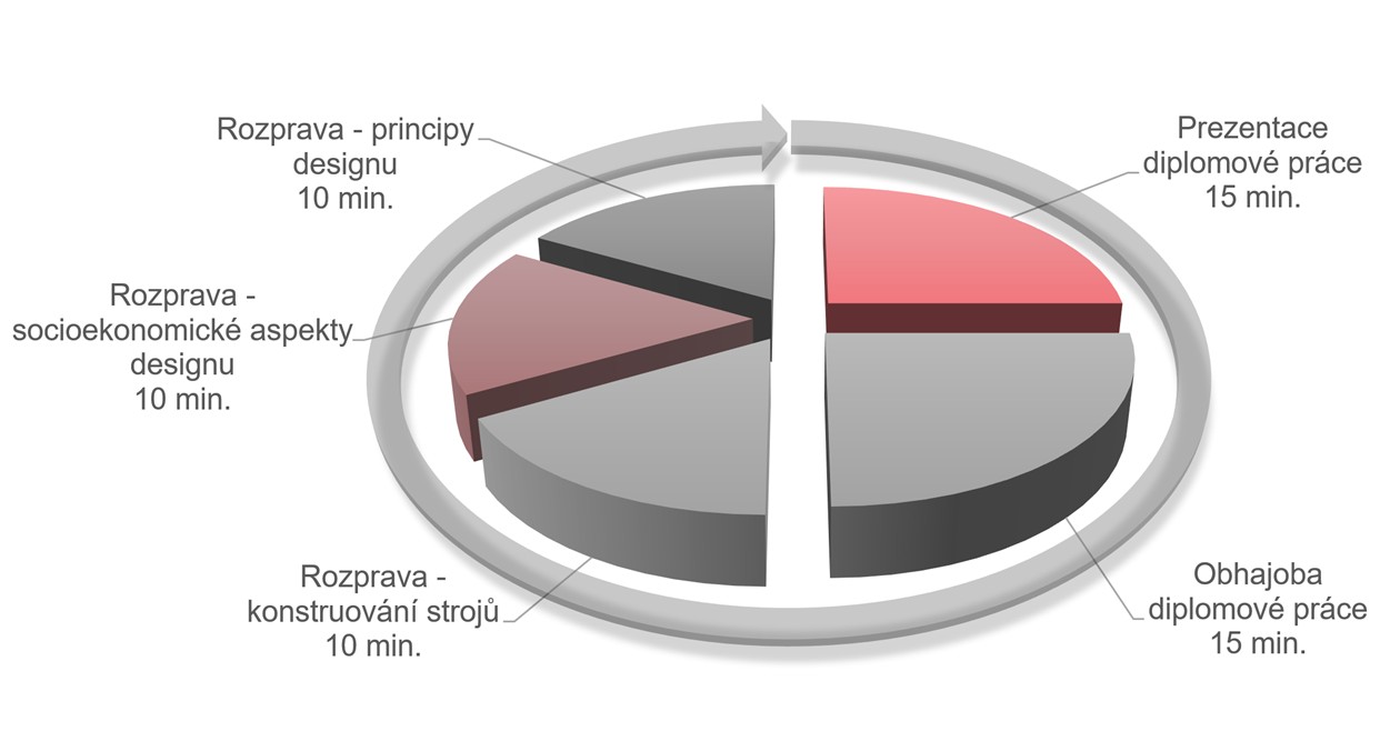 Pro magisterské studium jsou zkušební komisi k dispozici okruhy studia, ze kterých mohou být kladeny dotazy. Okruhy studia ke SZZ jsou stanoveny ve třech odborných částech: konstruování strojů, principy designu a socioekonomické aspekty designu. Každý student je u SZZ tázán cca 10 minut z každé části.